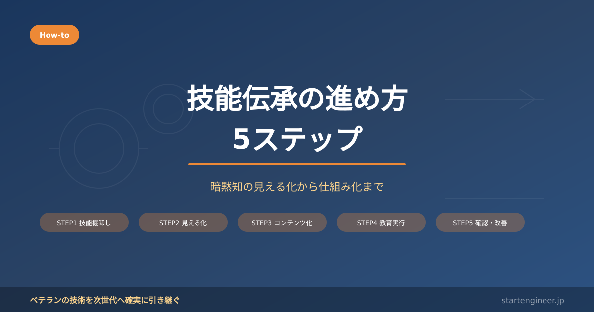 技能伝承を成功させるには、「いつか始めよう」ではなく、今日から始められる具体的なステップに分解することが重要です。