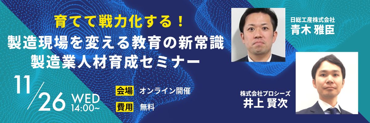 井上 賢次20年間にわたり、企業向けeラーニングの企画・開発・運用に携わる教育DXの専門家。株式会社プロシーズにて、製造業の教育課題に向き合い続け、2024年4月に製造業向けeラーニング「Start engineer」を立ち上げる。サービス開始からわずか1年半で200社以上から問い合わせを獲得。キャリアコンサルタントの資格を持ち、現場と経営の両視点から“育てて戦力化する仕組みづくり”を提唱している。